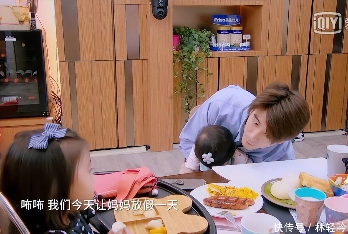 2017年孩子出生后,他在综艺《妈妈是超人3》中包揽育儿琐事:换尿布、煮辅食、哄睡无一不精。